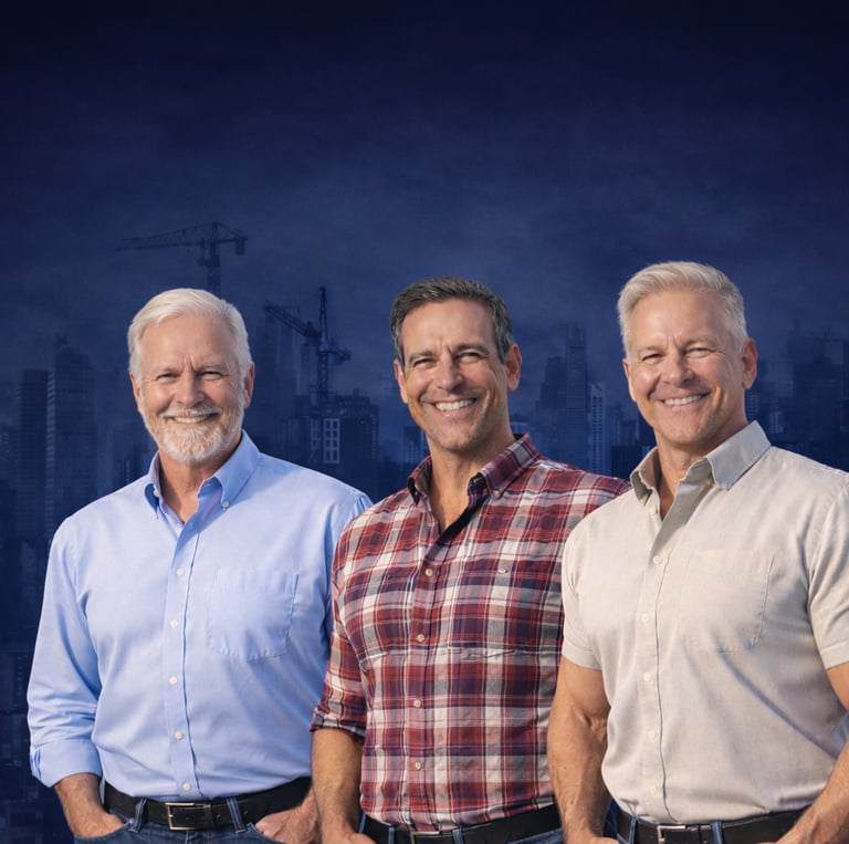Four partners united by a shared vision, blending real estate, construction, investment, and development expertise.